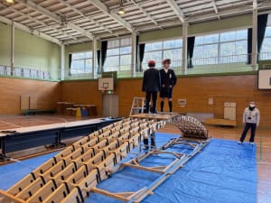 完成後は順番に模型に乗り、木組の技法による構造の強度を体感しました。
